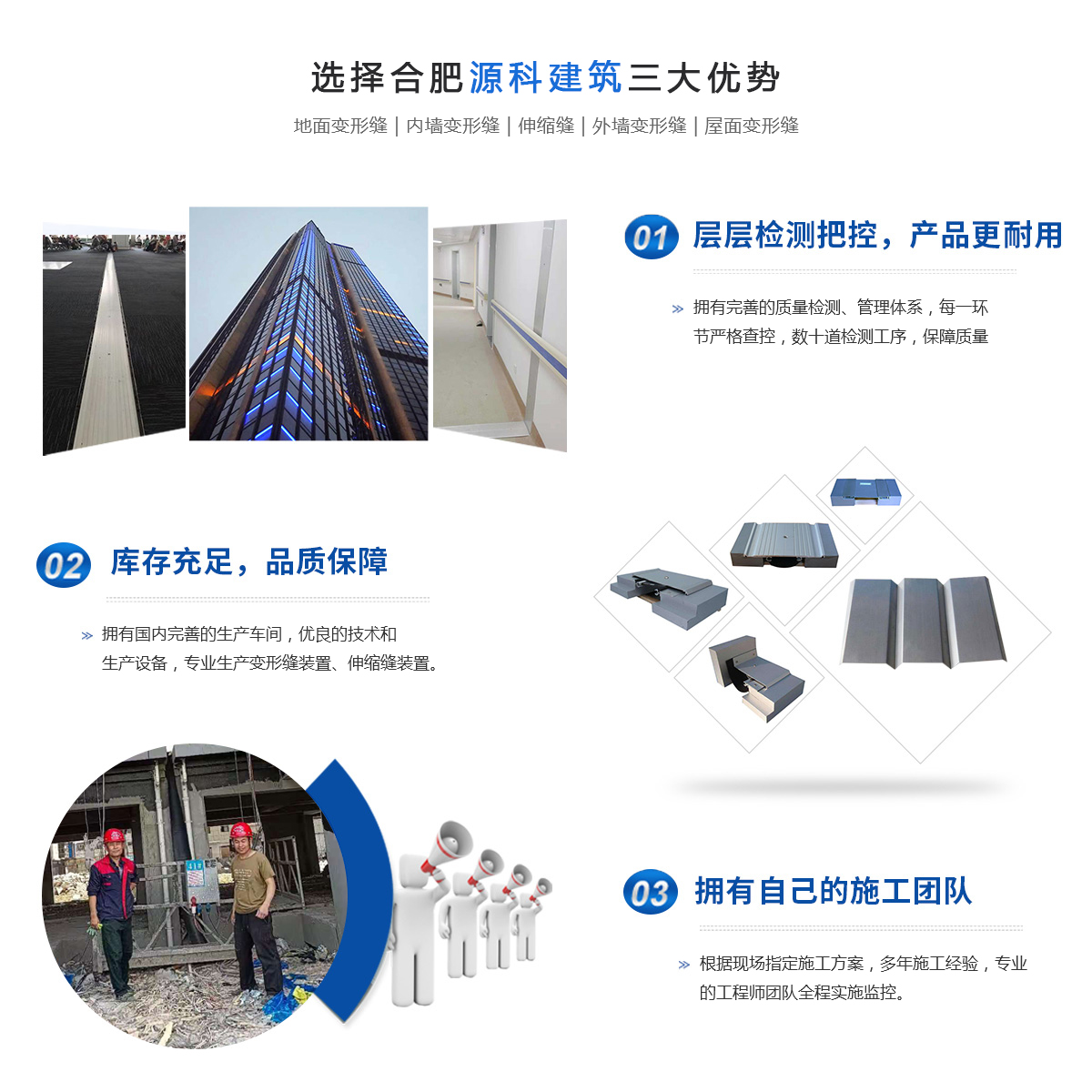 - 合肥源科建筑科技有限公司位于長三角城市群副中心的合肥,面向國內外生產銷售是專業研發及產銷各種建筑伸縮縫、地面變形縫、內外墻變形縫等裝置。參與了省內大型工程(醫院、學校、工廠、大型商場超市等)建設,是諸多建設單位和設計學院長期合作單位,在建筑變形縫伸縮縫行業樹立了自己的專業形象。本公司根據建筑業的發展和用戶的實際需要,深入研制出目前國內新型的建筑伸縮縫裝置。按照使用部位分為四個類別:樓地面變形縫;內墻、頂棚吊頂變形縫;外墻變形縫;屋面變形縫;按照變形...